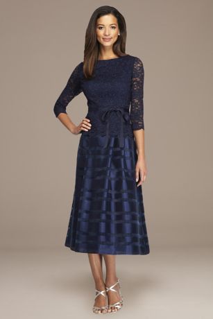 Take a twirl in this dress with a stretch sequin lace bodice and burnout taffeta A-line skirt. Tie the whole look together, literally, with the matching tie belt.