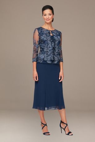Tea Length Mock Jacket Dress with Illusion Sleeves