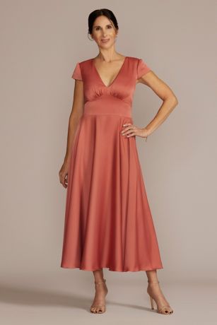 Tea Length Satin A-Line with Waistband Detail