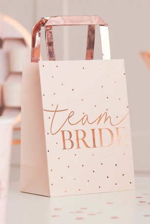 Featuring the phrase "team bride" in rose gold foil, these bags are a great place to stash gifts or goodies for your bridesmaids.