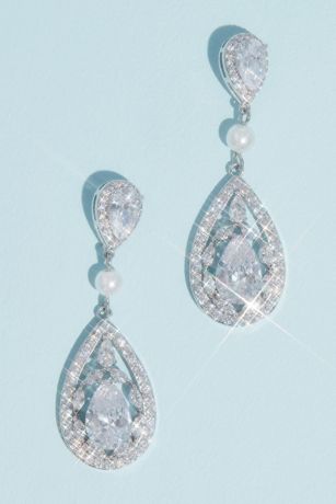 Teardrop Crystal Haloed Drop Earrings with Pearl