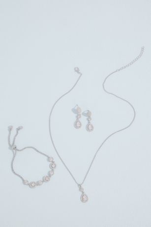 This three-piece jewelry set features drop earrings with a matching necklace and bracelet for effortless accessorizing. The teardrop crystal accents will capture the spotlight all night.