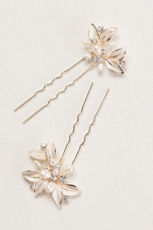 Textured Leaves Hairpins with Pearl Embellishments