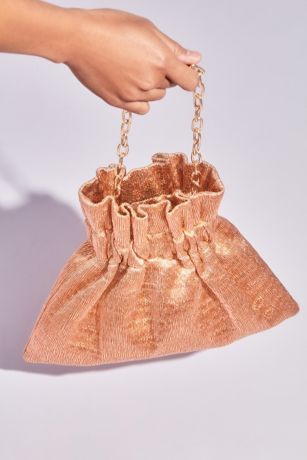 A luxe, textured satin clutch feels both dressed up and casual in a relaxed, drawstring shape.