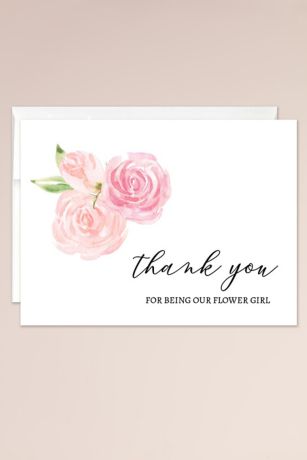 Send a sweet thank you to the flower girl who made your wedding day so special. Blank card with a white or kraft paper envelope; comes in a cello sleeve.