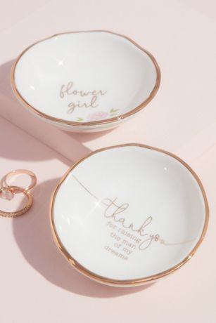 Thank the woman who made your love story possible...your soon-to-be mother in law! Gift her with this sweet ring dish, embellished with gilded detail. The message reads, "Thank you for raising the man of my dreams."