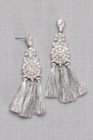 These gleaming danglers are crafted of glittering crystals and shimmery metallic fringe.