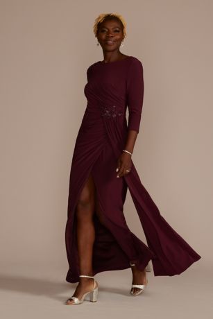 Jersey fabric cascades beautifully from the embroidered waist detail, giving this sheath effortless movement. Mom will love this sophisticated beauty for all her upcoming special occasions.
