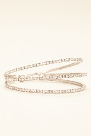 - Three rows of gleaming crystals and rhinestones blend into one dazzling cuff.