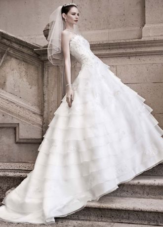 - Traditional in styling, this strapless sweep train ball gown is chic but timeless.