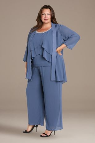 Graceful and elegant, this tiered chiffon pantsuit offers effortless elegance for mothers of the bride or groom, combining flowy comfort with sophisticated style.
