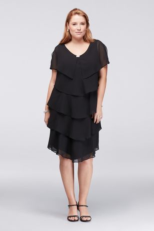 Tiered Georgette Plus Size Dress with Crystal Clip