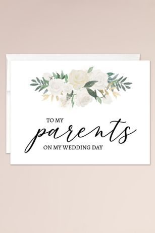 Jot down your thoughts and feelings in this lovely floral card and share with your parents on your wedding day. Blank card with a white or kraft paper envelope; comes in a cello sleeve.