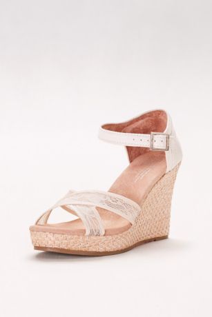 From sundresses to shorts to casual wedding dresses, this pair of lace-strap woven wedges complements every look. With every pair of shoes you purchase, TOMS will give a new pair of shoes to a child in need. One for One.