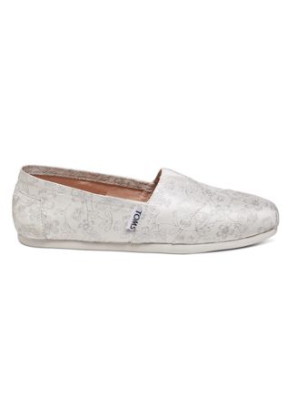 Metallic jacquard fabric gives the classic TOMS slip-on shoe a dressed-up look that's perfect for hitting the dance floor. With every pair of shoes you purchase, TOMS will give a new pair of shoes to a child in need. One for One.