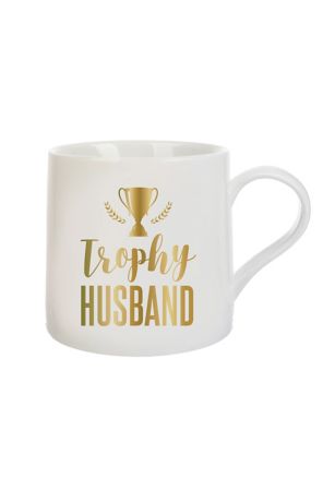 Your sweetie will love sipping his coffee or tea out of this cheeky "Trophy Husband" mug, embellished with a funny reminder of his new status.