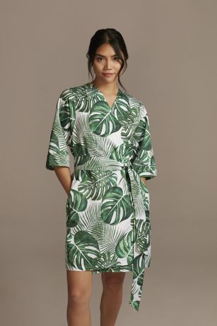 Calm any pre-wedding jitters by getting ready in this relaxed, tropical-print robe. Its soft and silky satin adds a touch of tranquility on the big day.