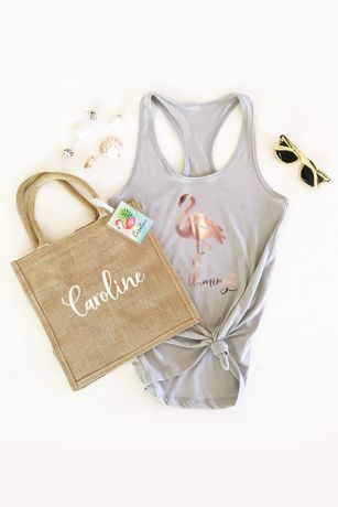 Tropical tank tops make a fun and stylish top to wear over your bachelorette party weekend or any summer event! Each soft cotton tank is available in white, black or grey and printed with one of our tropical styles in a beautiful metallic foil color.