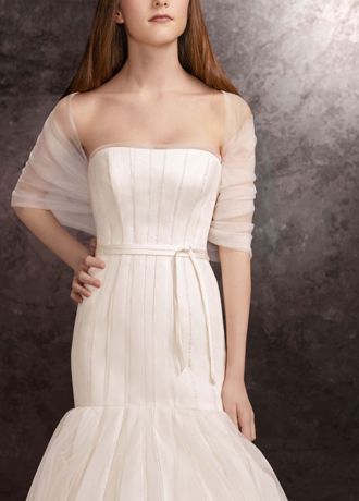 - Versatile tulle cover-up complements any gown for a simple touch of elegance.