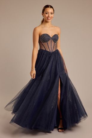 Tulle Illusion Bodice Corset Ball Gown