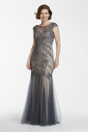- Tulle over nude lining gives this beautiful gown a two toned effect.