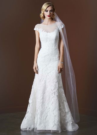 Tulle Trumpet Wedding Gown with Illusion Neckline