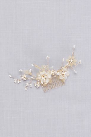 This ethereal comb features delicate flowers, sparkling crystals buds, and twined metal branches.
