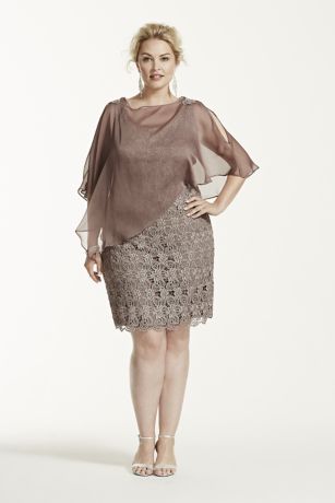 Two Piece Lace Sheath Dress with Caplet Overlay