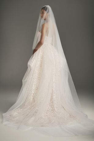 - Two layers of raw-edge tulle create an ethereal, romantic look that enhances any gown.