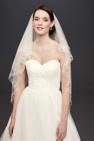 Two Tier Mid Length Veil with Beaded Edge