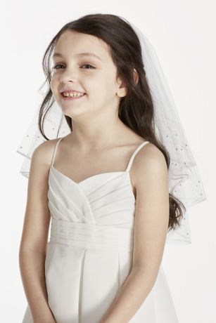 - This two tiered veil features shimmering crystals scattered throughout for a dazzling effect.