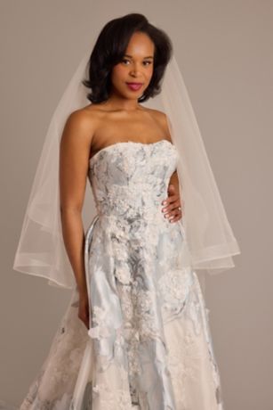 A band of horsehair trim gives this elegant two-tier walking length veil added volume and movement.