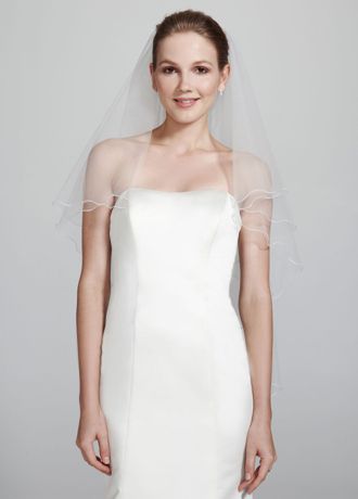 This classic two tier mid length veil features a wavy edge for a fresh, more updated look.