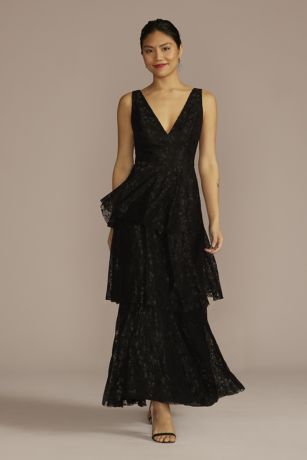 When wearing this flouncy tiered dress, every step you take is like strutting down the runway. Lovely lace fabric adds dimension to an already memorable party-ready look.