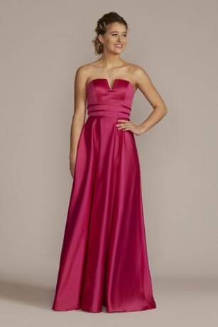 It's the details that make this shining satin-like dress one of dreams. Linework at the waist enhances the A-line silhouette, while a V-notch neckline adds a flirty touch.