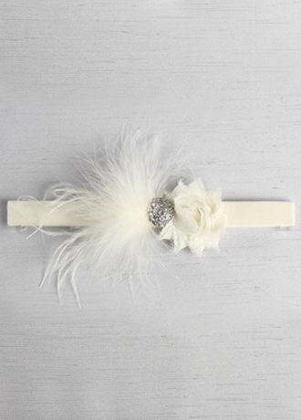 This simple velvet elegant garter is decorated with a chiffon shabby flower and feathers. The look is complete with a sparkly rhinestone brooch.