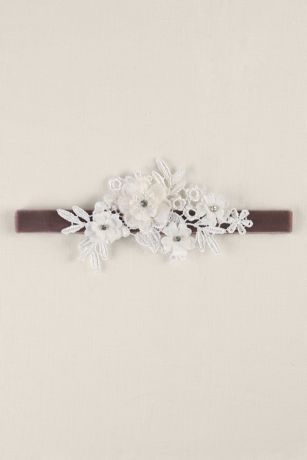 Velvet Elastic Garter with Ivory Applique