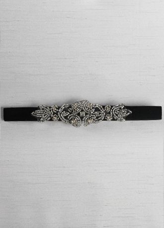 Decorated with an elegant rhinestone and beaded applique, this velvet stretch garter is a beautiful accessory to add to your wedding ensemble.