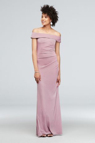 On-trend velvet and flattering side ruching take this off-the-shoulder dress to the next level.