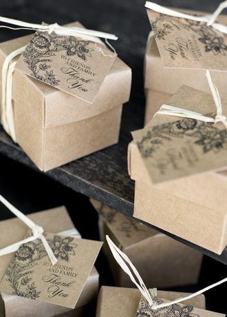 An easy way to let guests know they are appreciated! Add this kraft square favor card to any favor and tie on with ribbon, twine, or cord (not included). Cards are printed with a vintage floral design and To Friends and Family Thank You wording printed in black. Cards come with a punched hole.