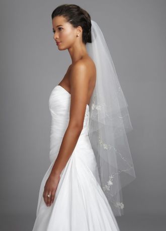 - Veil fatures flower motif and cut edge.
