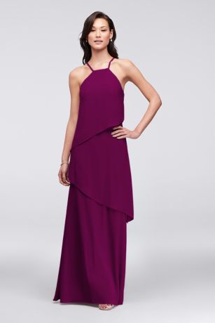 This long georgette bridesmaid dress with waterfall tiers is flowy, comfortable, and unquestionably elegant.