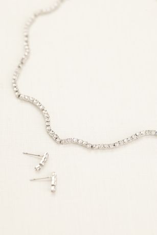 - Wavy style rhinestone necklace and earrings complement one another nicely.