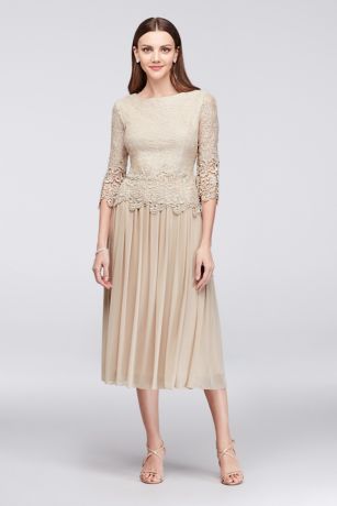 Webbed Lace and Mesh Tea-Length Dress