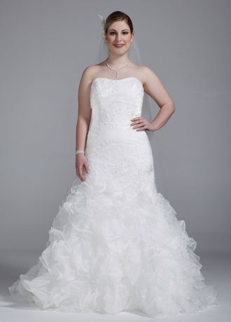 Wedding Gown with Lace Appliques and Ruffled Skirt