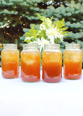 Help commemorate your big day with our Wedding Party 26oz. Mason Jars. Sold in a set of 4, these fun glasses are engraved with Bride, Groom, Maid of Honor, and Best Man.
