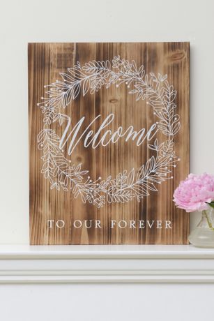 Dress up your venue with this "welcome to our wedding" stained wood sign.