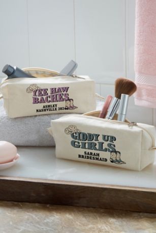 Keep makeup and brushes neat and organized on the big day or leading up to it with our western wedding personalized canvas cosmetic case.