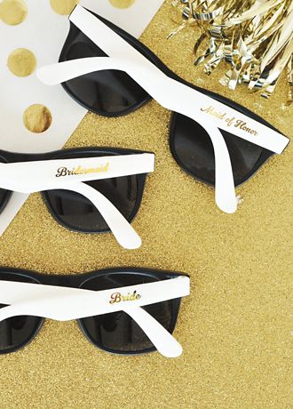 • Includes: 6 white sunglasses and 6 labels printed with metallic gold ink (1 Bride, 1 Maid of Honor, 4 Bridesmaid).