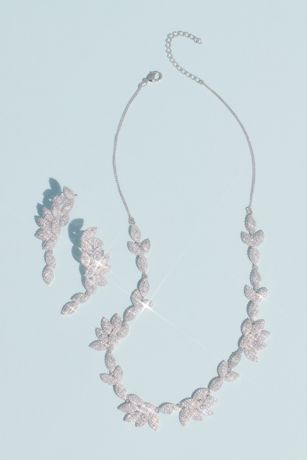 Marquise-cut crystals framed in a halo of pave stones create leafy clusters that sit at the collarbone of this sparkling crystal necklace, paired with a matching drop earring.